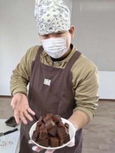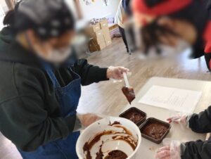 ブラウニーは材料を計量し、混ぜ合わせてオーブンへ🍫