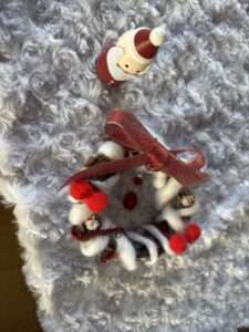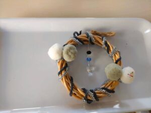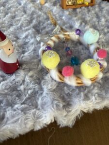思い思いに、毛糸やモール、リボンやストーンを選び、手掛けた世界に一つだけのクリスマスリース!!